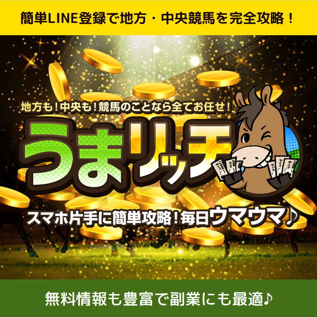 予想がLINEに届くのが◎。これ系のサイトってメアドが必須だったけど、うまリッチはメアド不要な所もいいね。